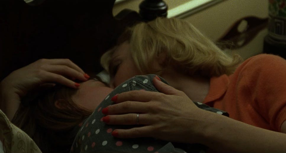 The use of a mixed climax is much more common than it might appear, and can appear not just in complex dramas, but also in a wide variety of genre movies (see The Matrix and The Sixth Sense for other examples of mixed climaxes). In Carol, at the end of Act 3, Therese and Carol finally consumate their relationship, but Carol leaves Therese due to her husband’s pressure. The mixed climax is a great way to create ambiguity and more complex emotional responses. There is great joy in Therese and Carol finally taking their relationship to the next level, but that joy is immediately shattered by Carol’s departure. In this case, the mixed climax also creates suspense. What will happen to the their relationship? If they hadn’t slept together before Carol’s departure, the stakes would be lower and therefore there would be less suspense.