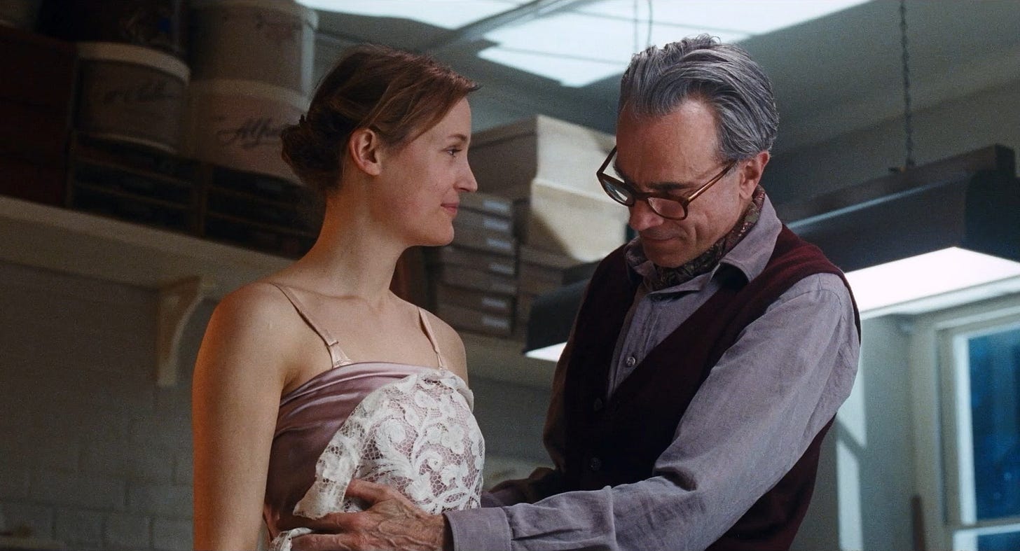In the meantime, I decided to do a breakdown of my favorite Paul Thomas Anderson film, Phantom Thread. With PTA’S most recent film One Battle After Another performing so well and on so many Top Ten Lists for 2025, and my choice to include Phantom Thread as a film in my Directing class for the spring, I thought this would be the perfect opportunity to analyze it. I love it’s style, narrative structure, and of course marvel at the performances of Daniel Day Lewis, Vicky Krieps, and Lesley Manville.