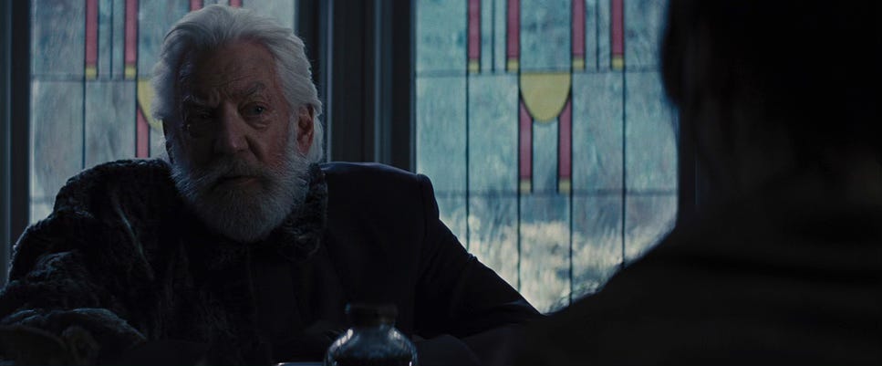 We also have a pretty strong climax around the 31-minute mark when Snow does let Katniss know that their attempts at faking a romance have failed.