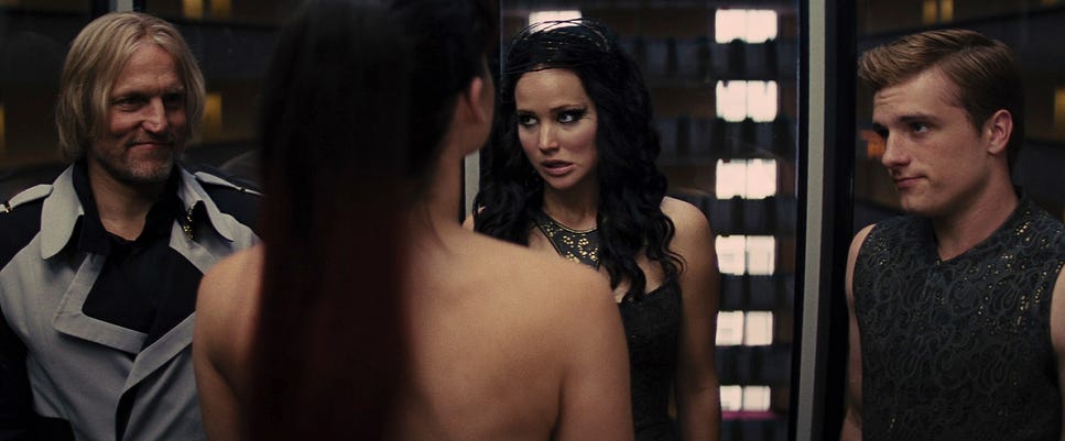 But the filmmakers and the original novel don't want to just have a repeat of the same games. And so, we have to do this extra work in order to set up the Quarter Quell and to set up the fact that Katniss and Peeta are going to have to compete again in The Hunger Games.