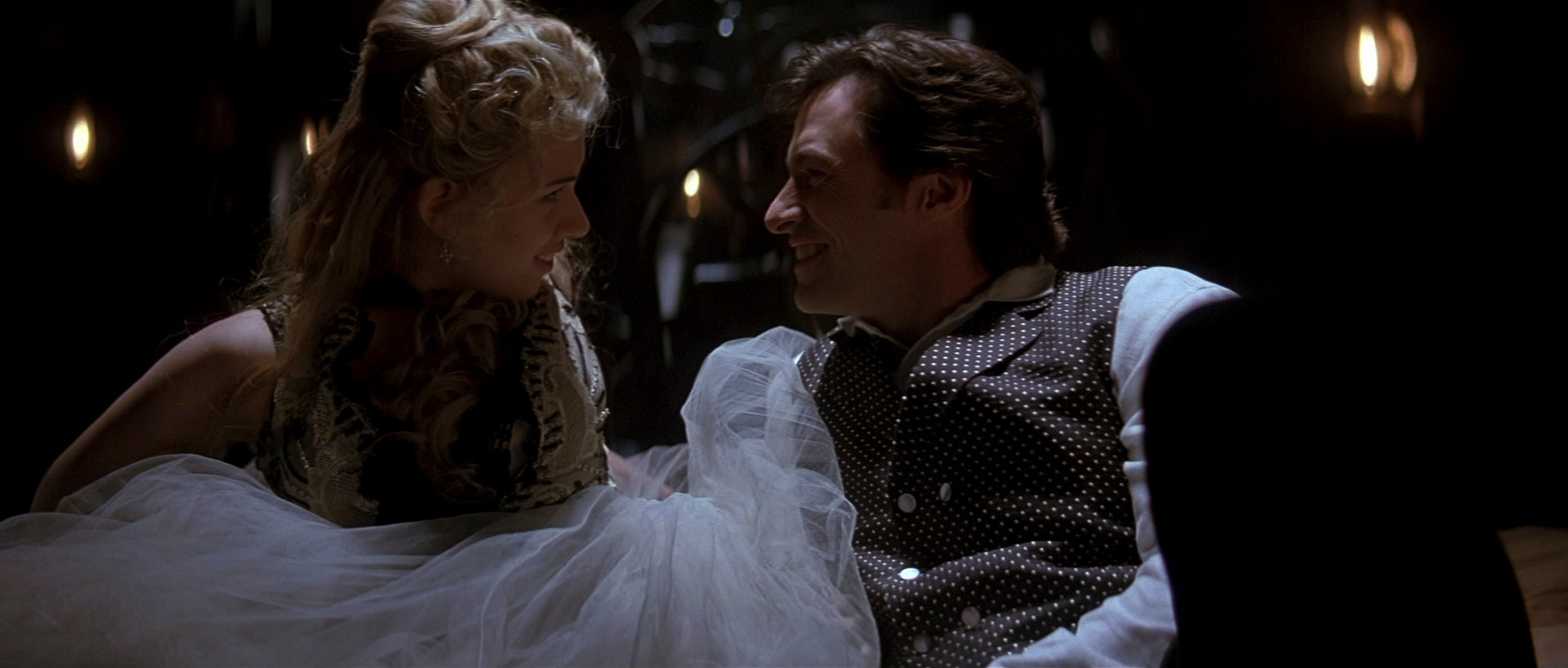 Act 1 ends with a scene dedicated to Angier and then one dedicated to Borden. First, we see Angier in Colorado, reading the diary and finding no answers in regard to the knot. Then we return to Borden in the past, who insists to Sarah he can still do his yet to be revealed trick. This is also the end of The Pledge. Act 2 starts with Angier before Colorado, still at a loss after the death of Julia. Drinking at a bar, he discovers a small playing card on the bottom of his glass, and finds Cutter there, ready to help Angier start his own act. This launches us into Act 2, and starts The Turn. I don’t subscribe to a typical three-act structure with a 30 minute/60 minute/30 minute timing structure. And indeed, Act 2 has a clear climax at the 60-minute mark when Angier performs The Transported Man with Gerald. He has succeeded at his own solo act, though he is dissatisfied at being stuck under the stage and missing the applause. So structurally, we are now moving into Act 3 with Angier’s goal of creating the “true” Transported Man. But in traditional three act structure, we are only in the middle of the second of three acts–that is we are still in The Turn.